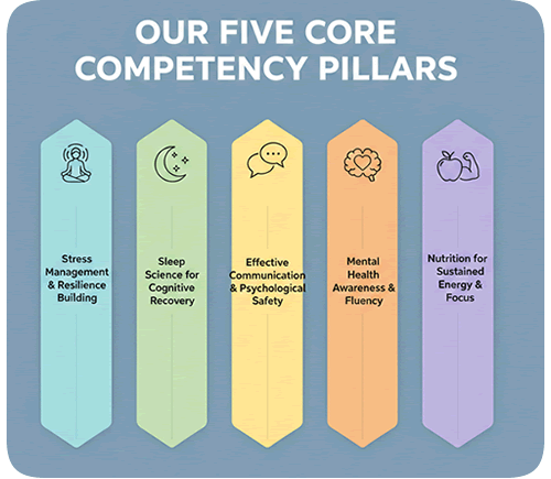 The Brain Waves curriculum is built on five interconnected pillars, each addressing a critical dimension of professional effectiveness and personal resilience.